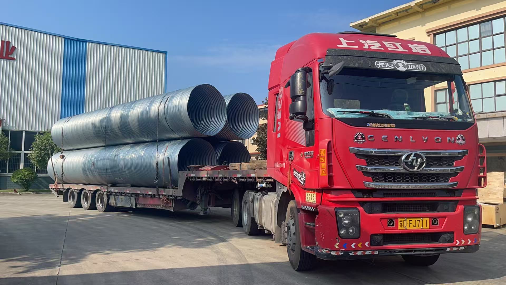 2025年7月9日,我公司发往甘肃xxx公司的螺旋钢波纹管发货图。